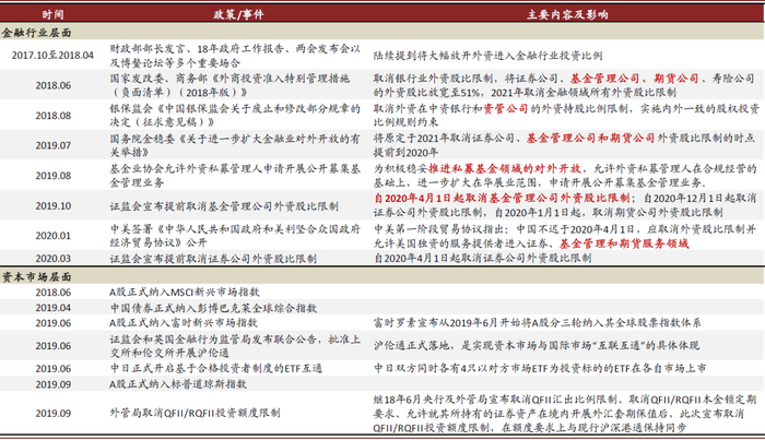 图表: 2018年以来金融行业加快开放,2020年4月1日起放开证券、基金、期货外资股比限制