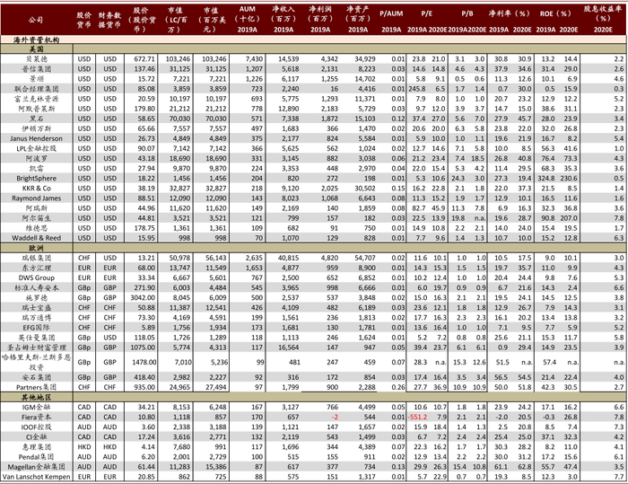 图表: 全球资管机构可比公司估值表