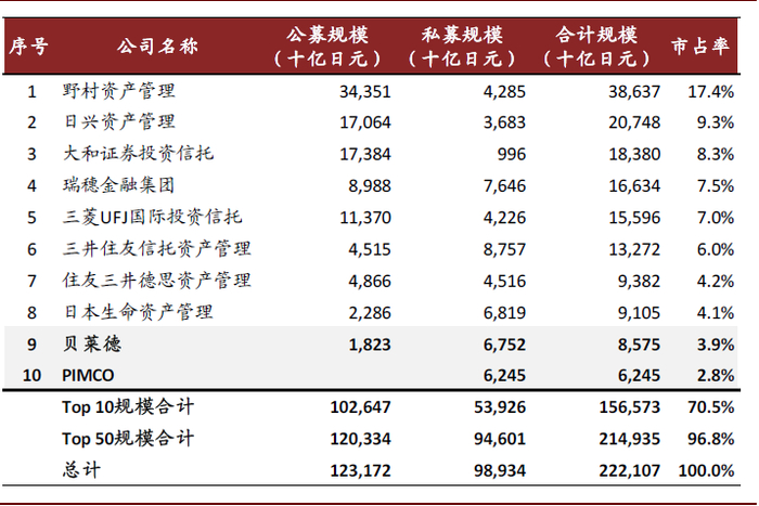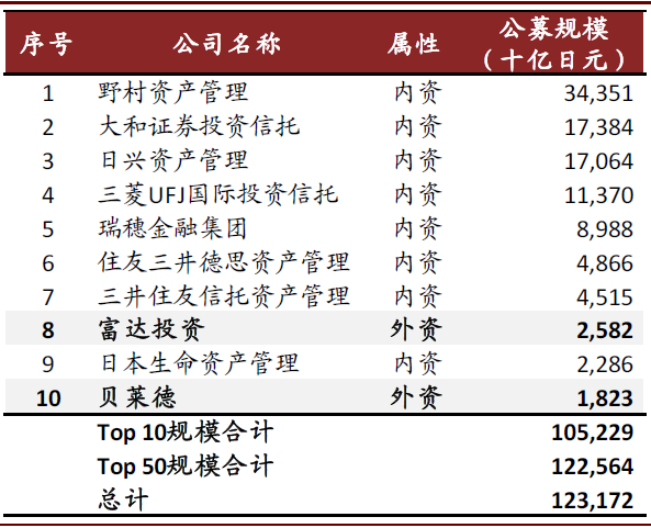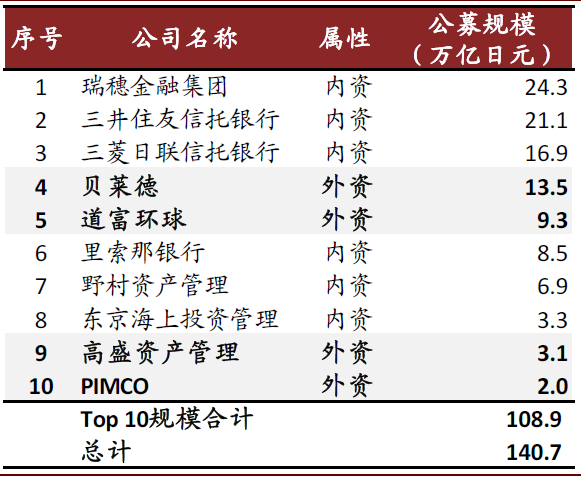 图表: 日本公募Top 10机构中仅2家外资机构