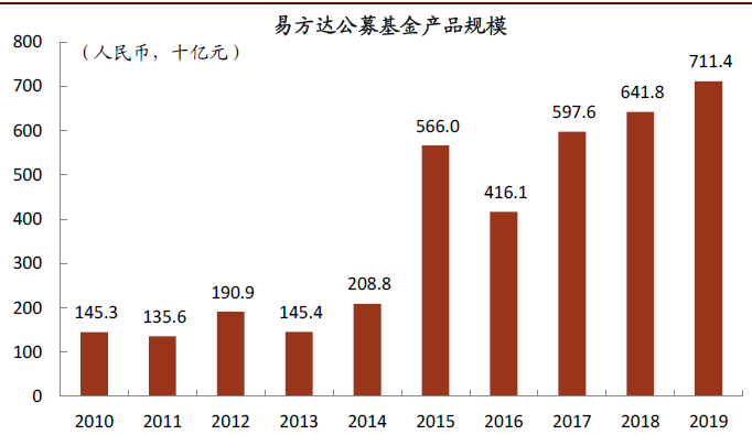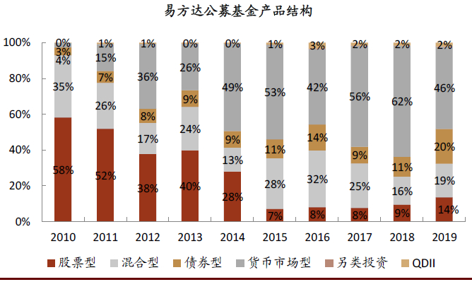 图表: 易方达公募基金产品规模及占比趋势