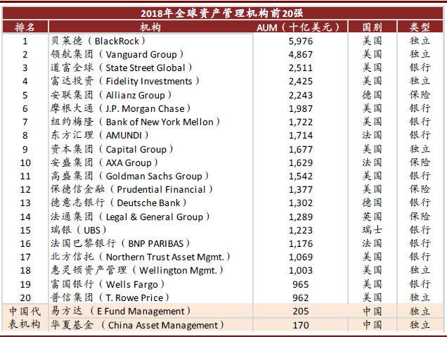图表: 全球AUM Top20资管机构均为外资