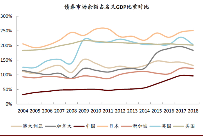 图表: 我国债市深度较发达市场仍存在较大差距