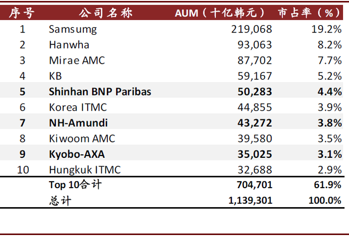 资料来源:韩国金融投资协会(KOFIA),中金公司研究部;注:数据截至2019年底;表中标灰为外资机构