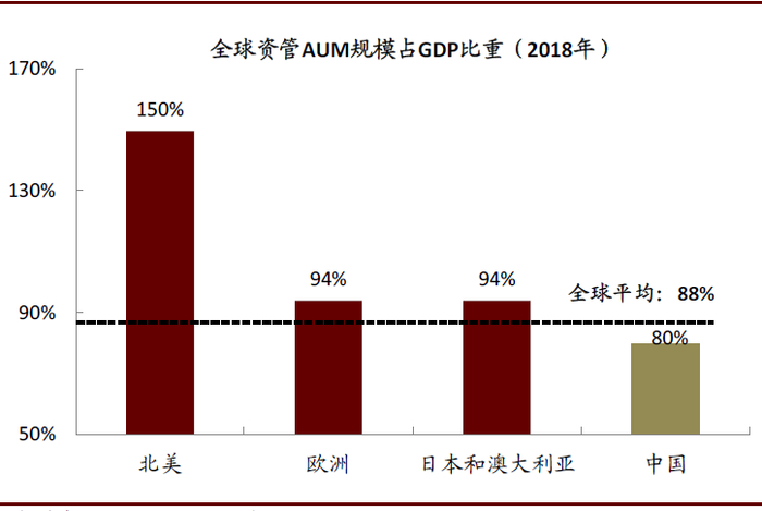 图表: 我国资管行业深度低于全球平均水平