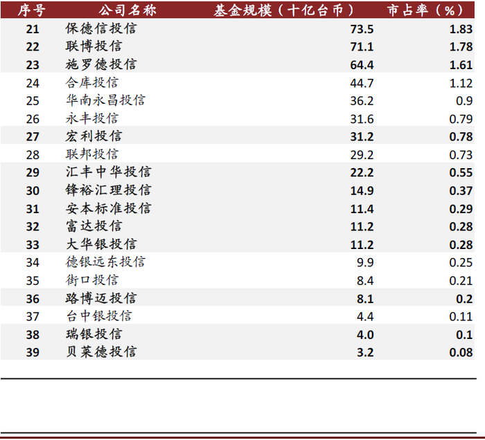 图表: 中国台湾地区Top 10投信机构中前七大均为内资机构