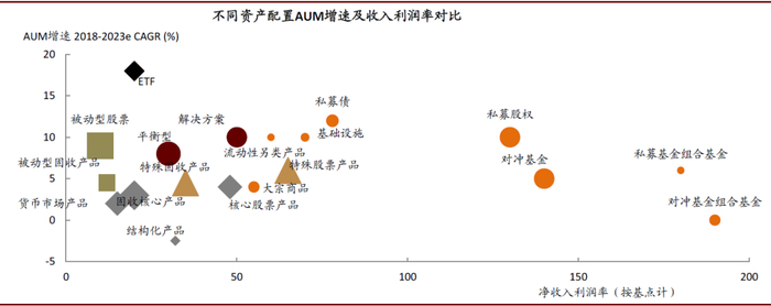 图表: 被动型产品规模增速高、另类型产品利润率高