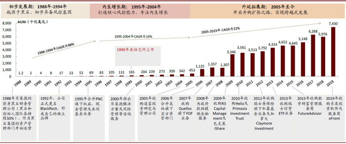 图表: 贝莱德通过内生增长及外延并购实现资管规模的跨越式发展