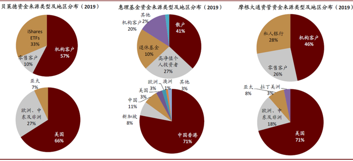 图表: 领先资管机构的资金来源和渠道分布
