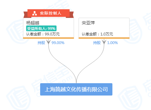 启信宝信息显示,今年10月20日,上海简越文化传播有限公司在临港新片区注册成立,登记机关为自贸试验区临港新片区市场监督管理局,注册资本100万人民币,法定代表人为宋亚萍。公司经营范围包含演出经纪;广播电视节目制作经营一般项目、组织文化艺术交流活动等。股东信息显示,该公司由杨超越持股99%。