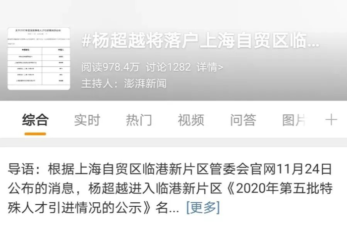 临港新片区有最开放的落户政策,亦有极高的办事效率,同时又求才若渴,自然成为杨超越的首选。