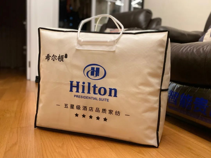 而这款羊毛被就是希尔顿 2020 年秋冬的新品,一条以五星级总统套房为标准的被子。