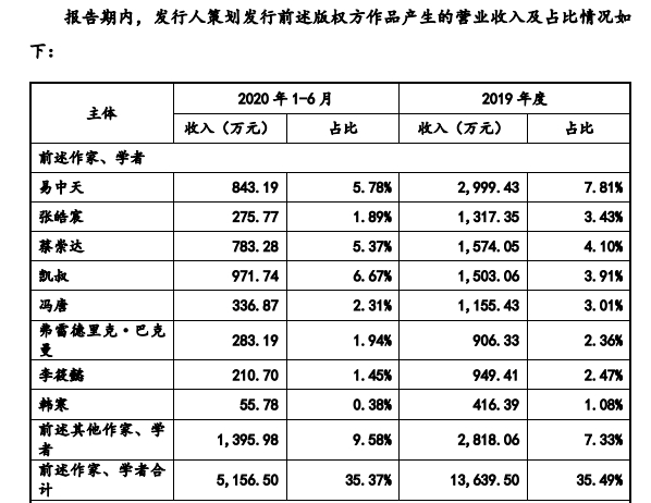 另外,持有果麦文化7.0066%股份的果麦合伙是发行人员工和合作作家持股平台。果麦合伙2016年成立,其中易中天、李继宏、黄山(冯唐妻子)三位作家通过果麦合伙间接持有果麦文化0.1864%、0.2796%和0.1864%股份。