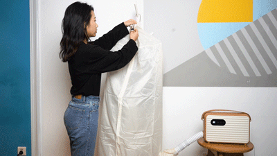 烘衣的时候拉上拉链、拉紧抽绳,下端把管子“穿进”连接口,密封以后是不会漏风的哦~
