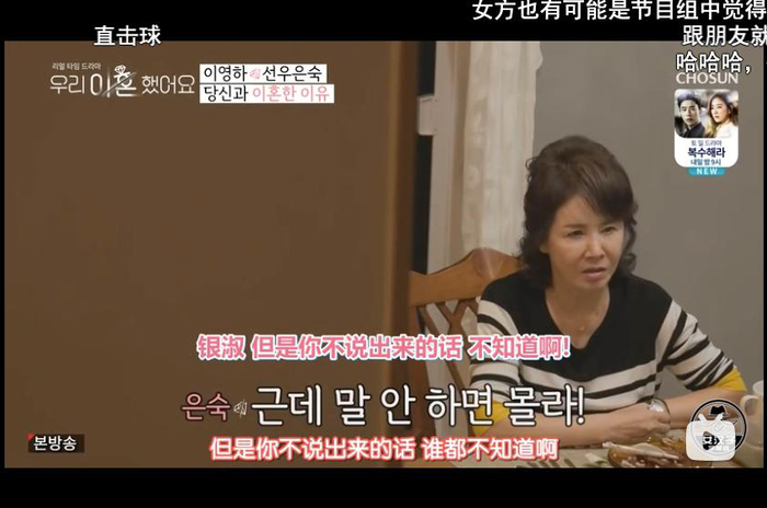 恩淑很不明白:你为什么不说话?(她也因此被一些人认为是“话多、强势、控制欲强”)