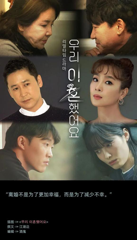 注:“离婚”在韩国是非常掉价的标签,堂堂正正地谈论它是罕见的。但在欧美,有许多离婚了依然做朋友、一起聚会的案例。