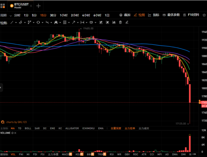 在海外市场进入感恩节假期之际,比特币上演“千刀”暴跌行情。周四上午比特币从18913美元高位暴跌,一度最低跌至17125美元,跌幅达9.4%。