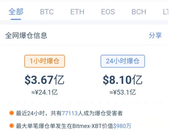 比特币价格暴跌也导致杠杆交易者大面积爆仓。币coin数据显示,近1小时内,靠借入资金买入比特币的交易者爆仓3.67亿美金。