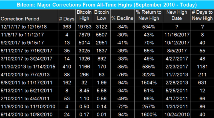从2010年至今,比特币共经历了11次暴跌。暴涨之后腰斩,甚至膝盖斩、脚踝斩的情形比比皆是。40%的回撤是家常便饭,80%、90%的暴跌也绝不少见。
