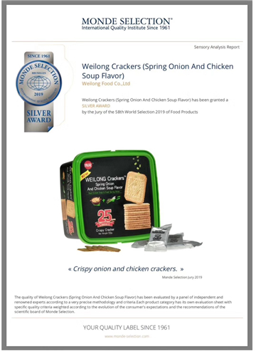 公开资料显示,伟龙食品是知名休闲零食高端品牌,香葱鸡片作为伟龙食品的爆款产品常居网红食品热销榜,入选了天猫官方爆款名单以及京东香葱味饼干蛋糕榜第15名。去年4月,伟龙香葱鸡片曾获得了在食品界有“诺贝尔奖”之称的世界品质评鉴大会银奖,是国内唯一一家获此奖的烘焙类饼干企业。