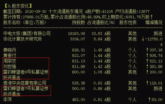 牛眼君发现,超级牛散刘世强、雷钧资产旗下私募,以及周荣芝还同时现身太极股份。以下是太极股份三季报的十大流通股东。