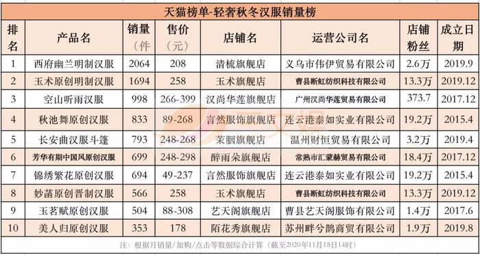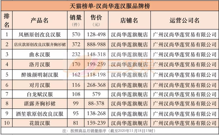 除了重回汉唐、汉尚华莲,还有这些公司的汉服销量不错。