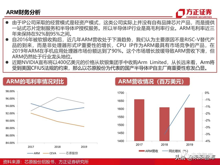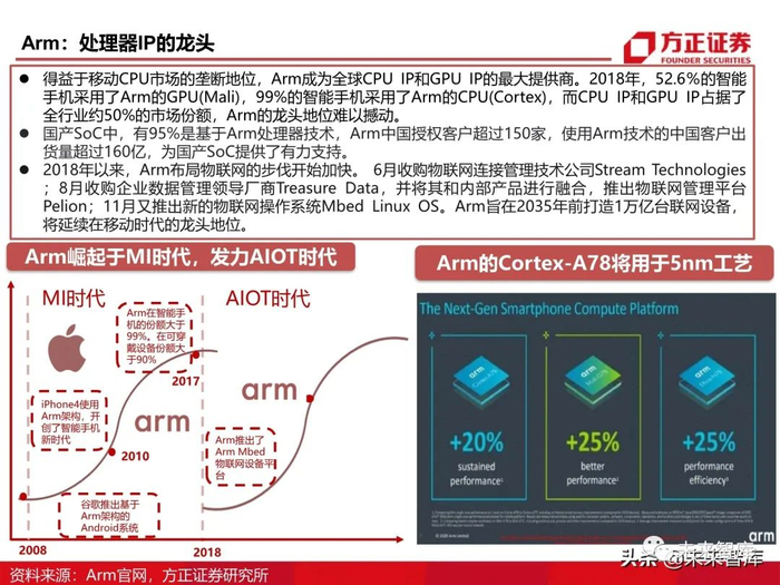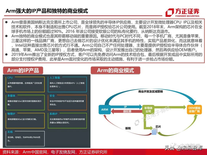 MI时代的两大操作系统及应用开发,都选择了Arm,半导体IP市场在不断成长,Arm也成为了全球半导体行业分工中IP授权的龙头,2019年市占率超过40%;