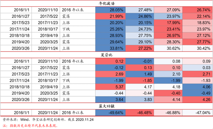 由于光伏产业属于细分新能源概念,故我们将光伏产业指数与新能源主题指数的历史走势进行对比。可以看到,2016年以来光伏产业指数涨跌与新能源主题指数高度同步,但光伏产业指数的收益水平和夏普比更优。分行情来看,光伏产业指数在各阶段均表现出更高的波动性,交易属性更强,且2016年以来光伏产业指数在上涨阶段表现优于同期的新能源主题指数,在震荡和下跌行情中走势相对落后。