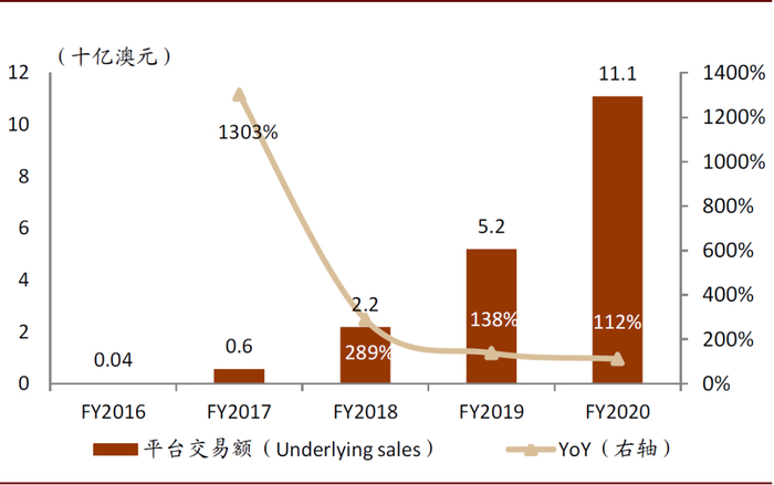 图表: 平台交易额FY16-FY20复合增速为308%