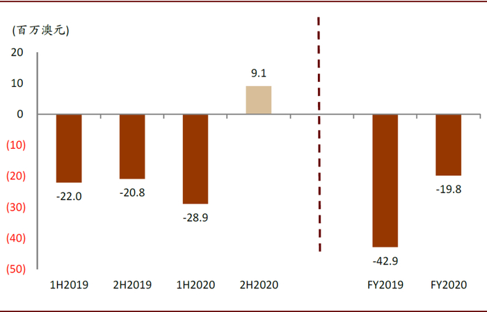 图表: 2020财年下半年归母净利润为913万澳元