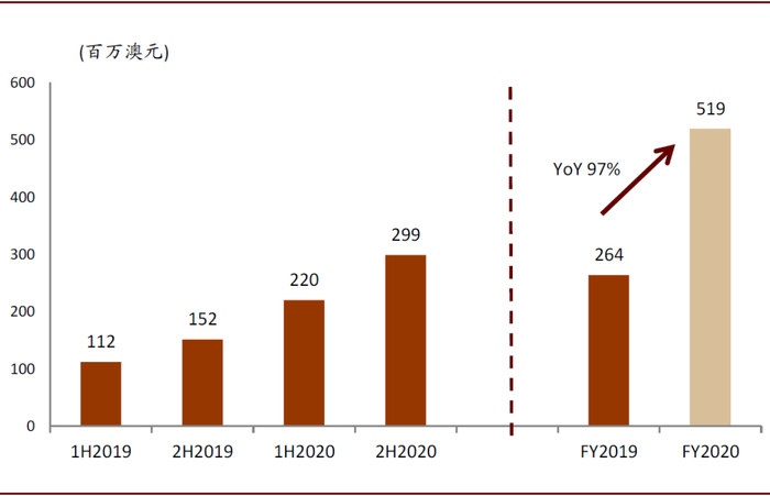 图表: 2020财年营收同比增长97%至5.2亿澳元
