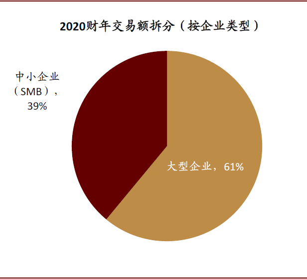 图表: FY20平台交易额中有39%来自于中小企业(SMB)