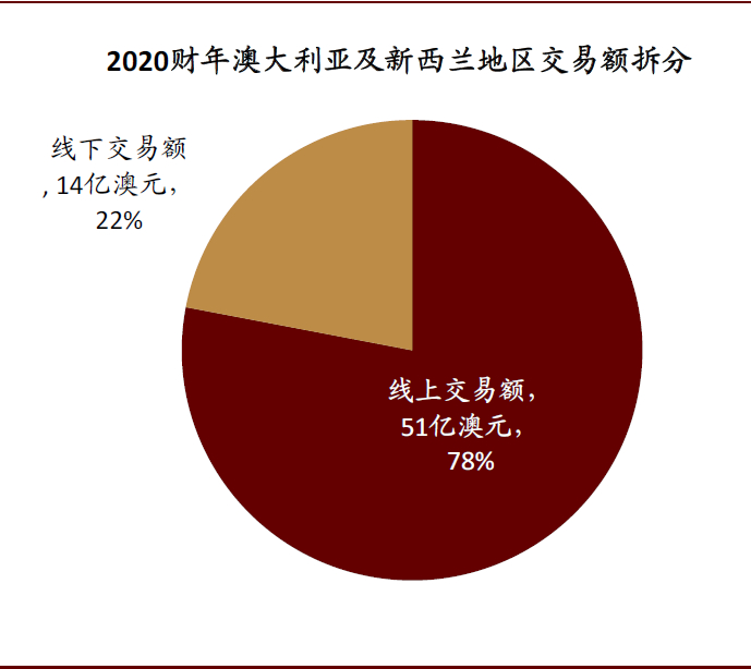 图表: FY20澳大利亚及新西兰地区线上交易额占比78%