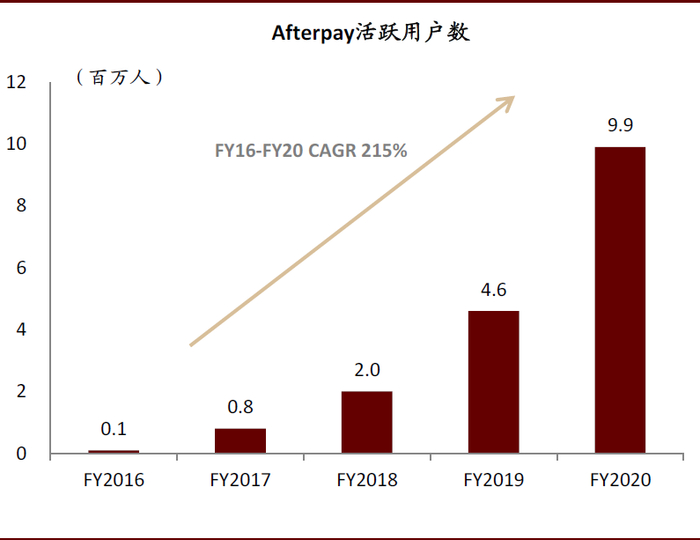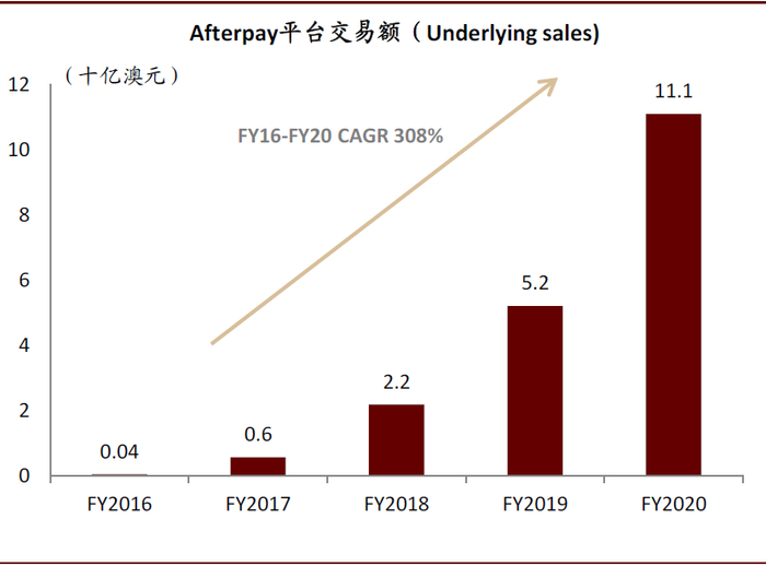 图表: Afterpay营收FY16-FY20复合增速达308%