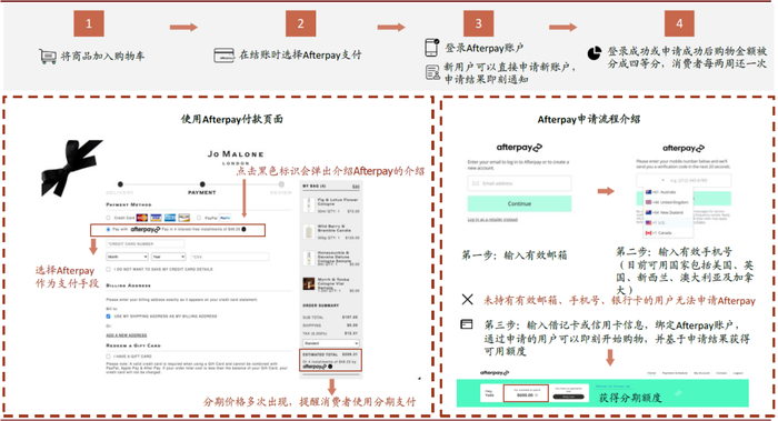 图表: Afterpay线上消费及申请过程