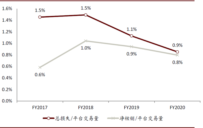 图表: 2020财年Afterpay总损失占交易额比重下滑0.27ppt至0.85%