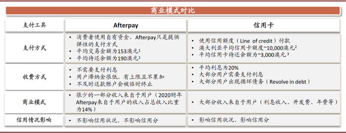图表: Afterpay与澳大利亚信用卡商业模式对比