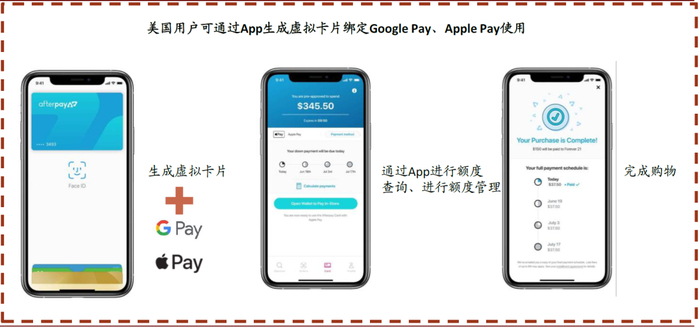 图表: Afterpay美国用户可通过账户生成的虚拟卡片绑定Google Pay和Apple Pay完成消费
