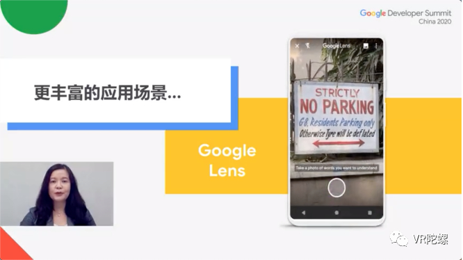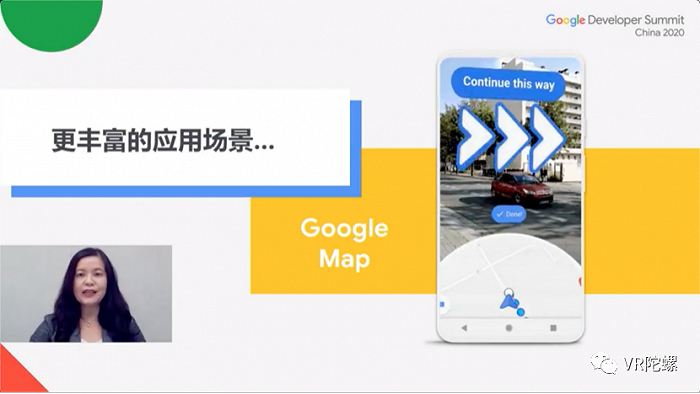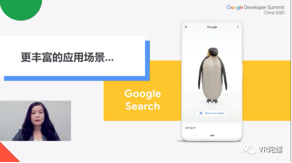 此前,王启文在演讲上还介绍了中国地区ARCore的应用情况。在此基础上,大中华区AR/VR负责人熊子青补充ARCore应用案例,她以“ARCore新近更新及应用实例”为主题,从AR近期发展、ARCore进程、2020新近更新三个方面介绍了ARCore产品动态。