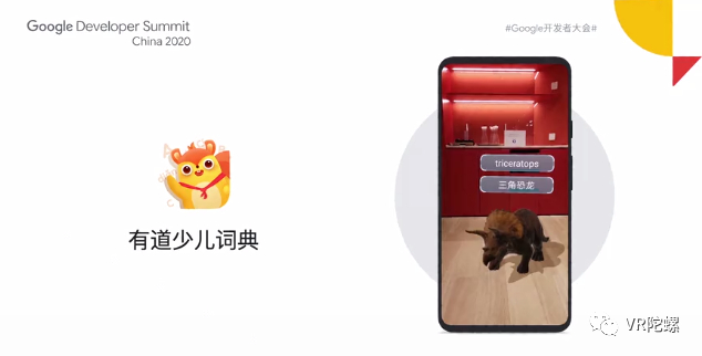 关于中国地区的应用案例,王启文介绍了包括美图、滴滴、有道少儿词典的中国开发者如何使用ARCore提高产品的性能和体验。