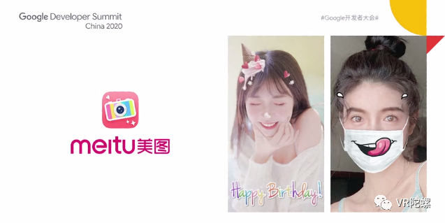 美图公司利用ARCore的增强面孔API(Augmented Faces API)构建了100多个自拍滤镜,就是现在我们在BeautyPlus上可以体验到的AR特效,用户可以拍摄照片和视频与朋友分享。