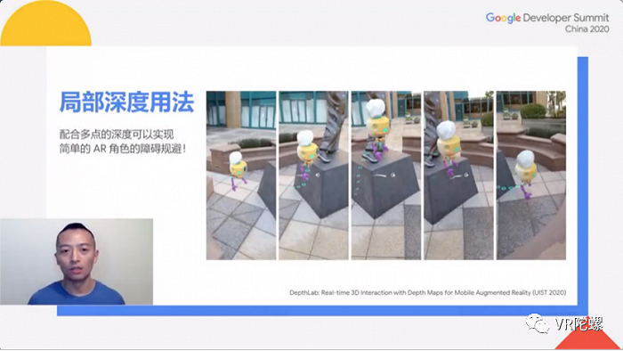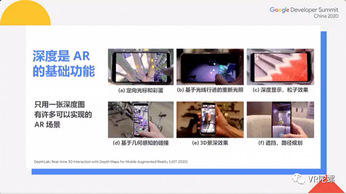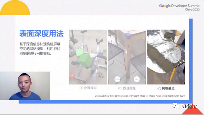 周克忠还介绍了目前团队发表的论文《Depth Lab:Real-time 3D Interaction with Depth Maps for Mobile Augmented Reality》(UIST,2020),论文主要关于如何从深度信息实现以上功能,以及深度信息可以开启怎样的应用场景。