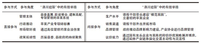 表1:洛川当地政府在参与苹果产业发展中的有效举措