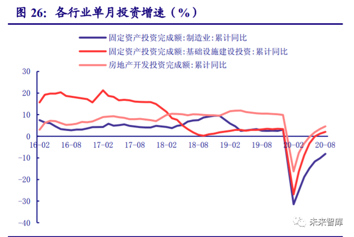 尽管随着疫情的逐步缓解,经济逐步复苏,市场对于基建投资逆周期的预期有所弱化,但 从前瞻性指标来看,8 月重卡、挖机销量分别达 12.8 万辆、2.1 万台,同比分别增长 75%、51.3%, 仍然保持强劲增势,其中挖机销量连续五个月同比增速超 50%。在下半年重大项目加速建设 的背景下,我们预计下半年基建投资将进一步发力。