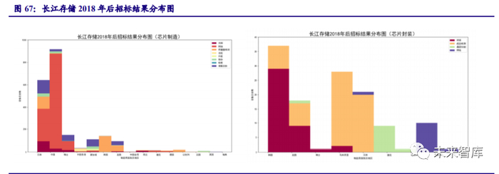2018 年后,长江存储科技有限公司的主要招标目标为芯片制造设备和控制、分配、废物处理系统,也有部分的招标是在硅片制造与芯片封装。相较于 2018 年前,长江存储在控制分 配与废物处理系统上关注更多。从制造商国别及地区的角度来看,国内制造商的中标数量是最 多的,其次为日本、德国、韩国、英国、美国等。从设备所属生产环节的角度看,中国制造商 的供给主要集中于芯片制造,日本则是在硅片制造上稍多于中国,德国与英国的供给则基本上 都是控制分配与废物处理系统,韩国与美国主要是芯片制造与控制分配废物处理系统。