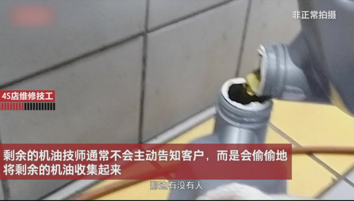 此外,截余机油的情况也可能发生。新京报今年10月报道,有部分4S店会截留变速箱油,从62元一瓶的刹车油到120元一桶的防冻液,技师都会整瓶整瓶地截留下来。据一名员工介绍,这些被截留下来的油液产品,在下班之后都会被4S店统一回收。