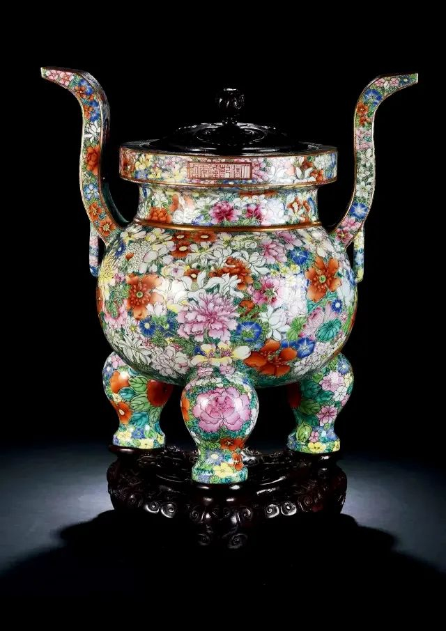 2015年,中国嘉德香港秋季拍卖会上一只“万花不落地朝冠耳三足炉”就拍出了223万人民币的高价。