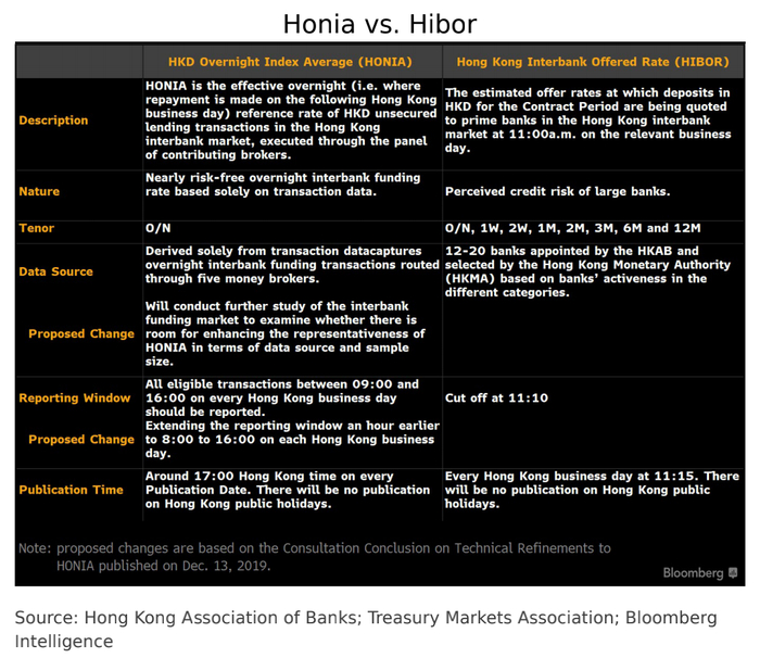 彭博行业研究:中国香港利率基准改革Hibor将与Honia并存