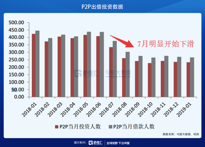 投资者的信心急剧下降。同样是去年底,当期活跃出借人、借款人数量分别为371.7万人、602万人,同比2017年12月出借人数686.5万人、借款人数689万人均有所下跌,其中出借人数下降明显,降幅高达46%。