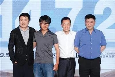 ▼ 附图:路金波和韩寒的合影(中间两位)