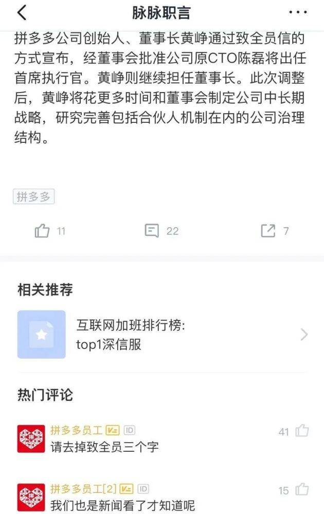 但在拼多多公司内部,大部分员工却很安静——因为他们并没有收到“全员信”。
